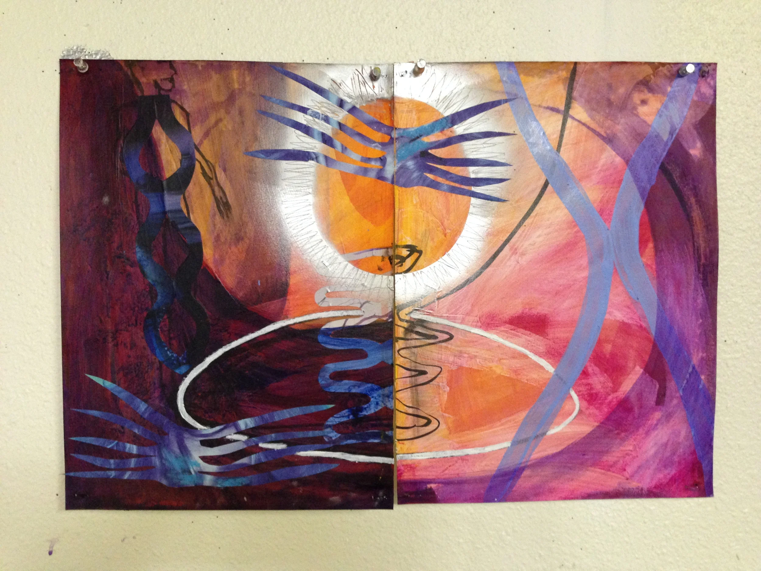 Also I have two pieces that have turned into triptychs , they almost remind me of altar pieces. They are two drawings about meditation and the removal of all the crap . Meditation has been likened to the process of washing, we wash and wash and the mind/body/soul gets filled up with stuff that bogs us down. These drawings are a way to describe this process that somehow also involves a lot of spinning, as though the process of spinning helps clear out the junk.